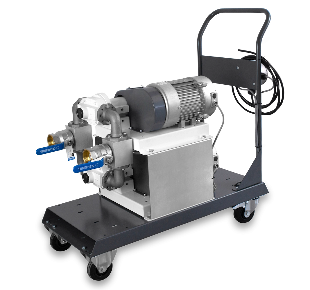 EExd high flow pump kit assembled in a mobile bedplate with wheels